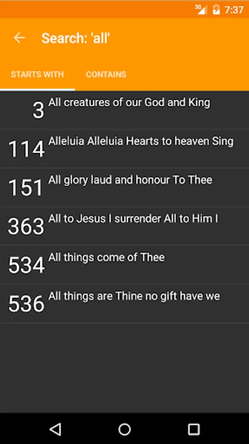 If you don't know the hymn number but know the title, just enter few words from the title in the search box and all possible hymns shall be returned to you.