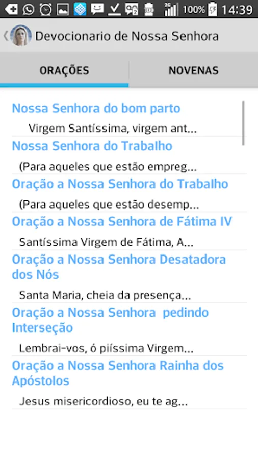 With the prayer book of Our Lady you can pray the Our Lady Oficio with audio, pray prayers and novenas, receive notifications, share prayers and novenas through WhatsApp, Gmail, Facebook and more.