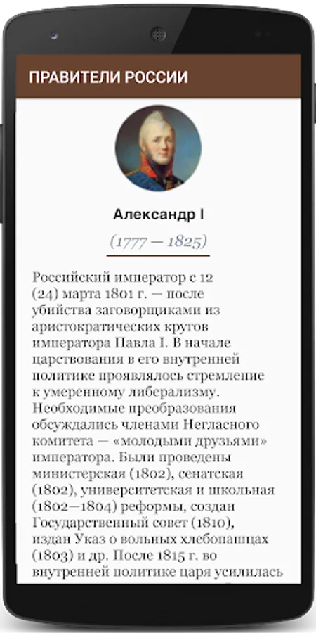 • All the rulers of Russia with photographs, a description of their biography and the course of their policies
