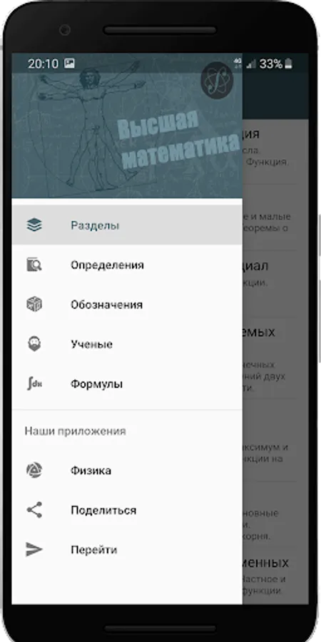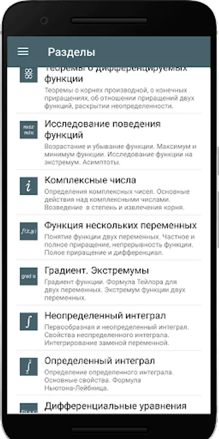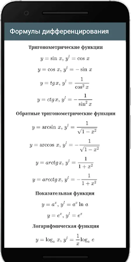 The application will be useful to school students to prepare for the exam and exam, students of technical universities, teachers, engineers, as well as anyone interested in mathematics. Designed for tablet and phone.