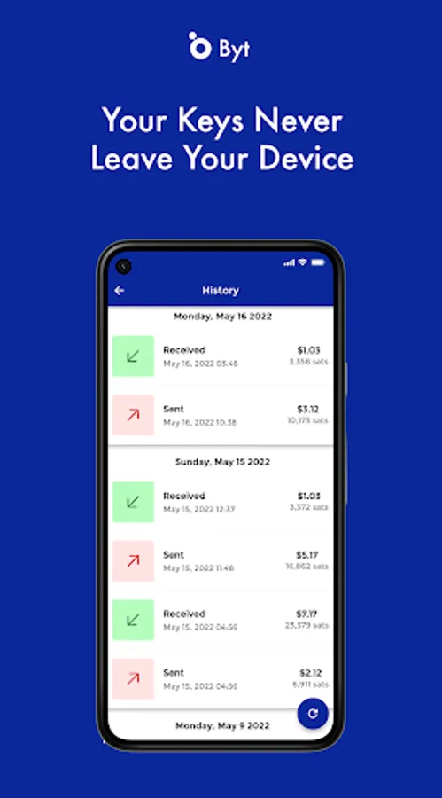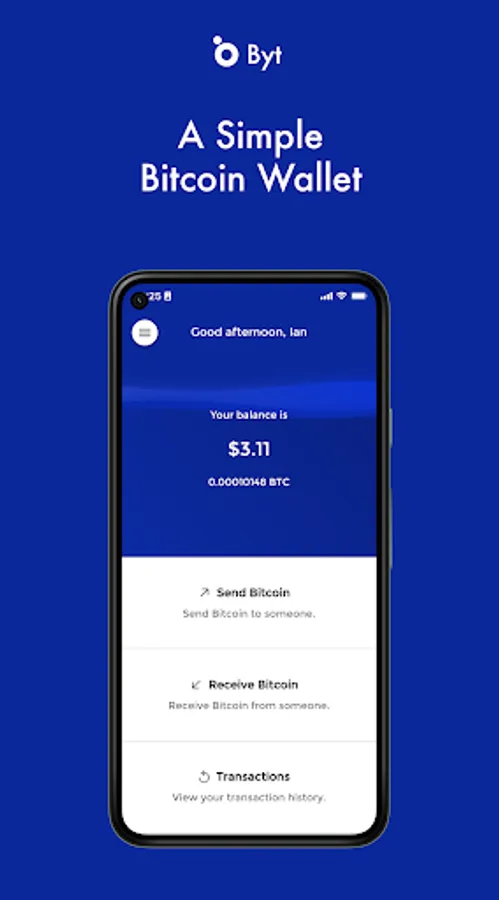 Byt is a simple Bitcoin wallet that will let you easily send and receive Bitcoin from your friends, family or customers.