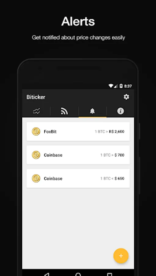 Create customized alerts and use our exclusive ticker and simple widget to monitor de market.