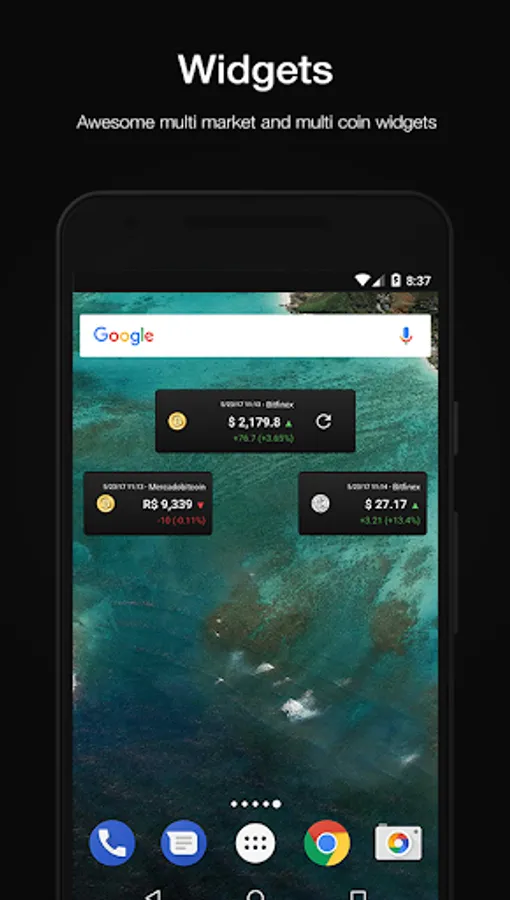 Stay informed about the Bitcoin (btc), Litecoin (ltc), Dash (dsh), IOTA (iot), Decred (dcr), Monero (xmr), Bitcoin Cash (bch) e Ethereum (eth) prices with real time informations, exclusive charts (1d/1w/1m), price alerts and widget.