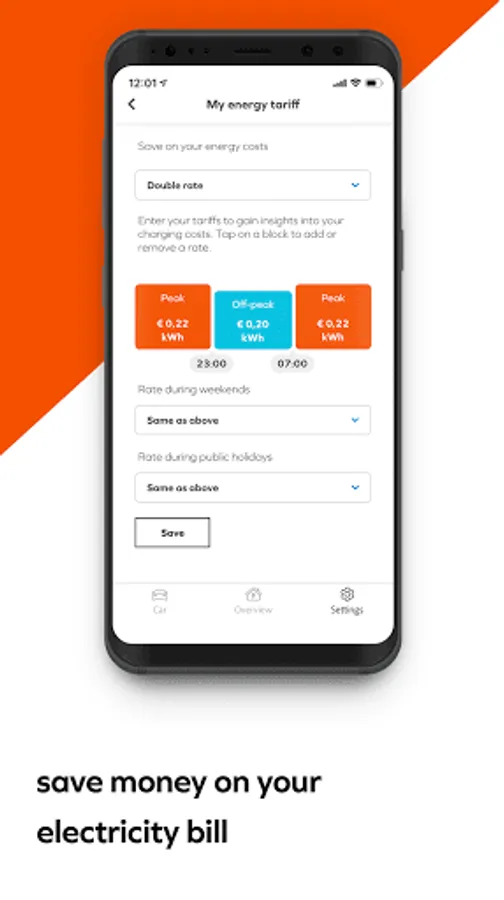 By helping to balance the electricity grid, you will receive a cash reward for every kWh you smart charge. Do you have an energy contract with off-peak hours or dynamic tariffs? After you fill in your energy tariffs, your charging schedule will be optimized to charge during the lowest tariff periods. After each session, you instantly see how much you saved on your electricity bill.