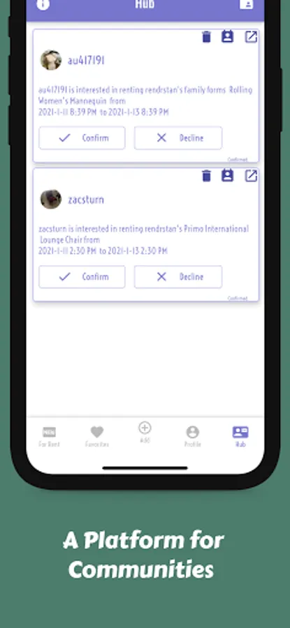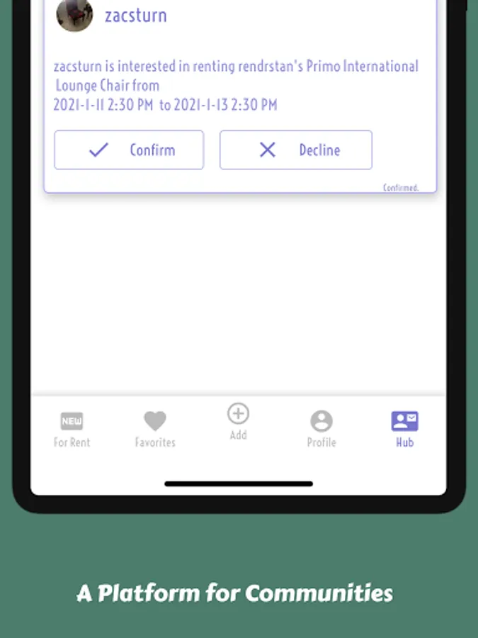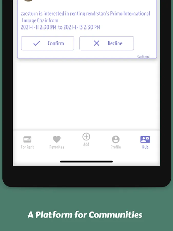 An equivalent level of detail is given to any Rendr user, stay on track with when you meet your vendor, when pick up your item and when it is returned.