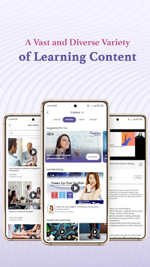 We provide nine main features: OnLive Classes, ReSkills OnDemand, On The Go, Podcasts, Special, OnFerence, OnStage, 1 On 1 and Library, each catering to a different niche of learners.
