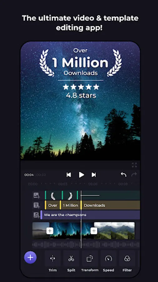 • Intuitive Video Editor: Effortlessly trim, merge, add music, and apply effects with just a few taps.