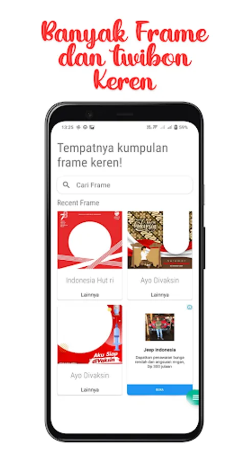 Multipurpose Frame is an application that offers a complete selection of frame and twibbon templates. With this application, users can easily add beautiful frames to their photos, as well as design twibbons with great creativity for various events and special moments. The app provides a variety of themes and styles, from cute, romantic, to professional, allowing users to customize their photos with a special touch. With a simple interface, "Multi-Purpose Frame" allows users to edit and save their images quickly and easily. With this application, your creativity will be wide open, so that every precious moment can be immortalized with a unique personal touch.