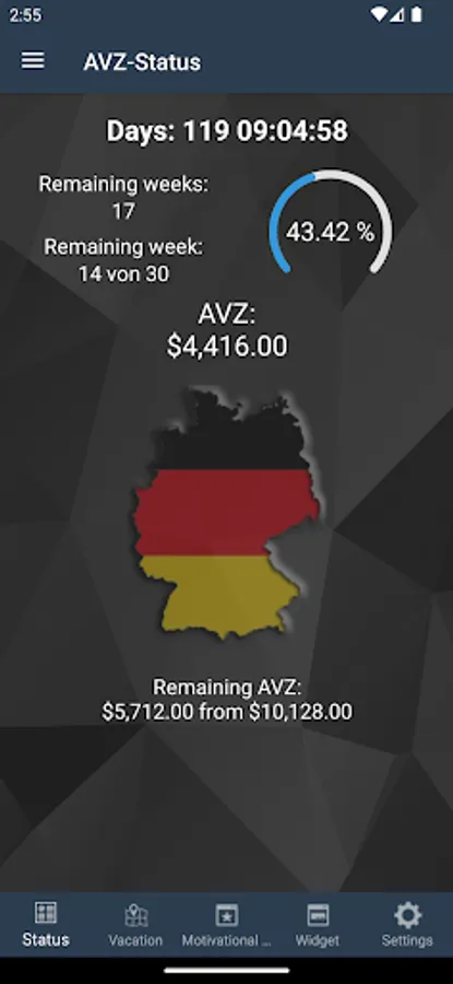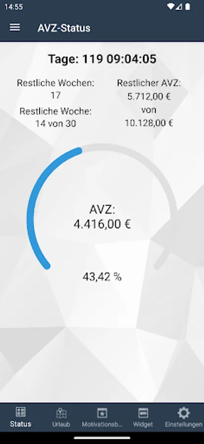 A widget is also offered that quickly informs you how much you have already earned, how many days/weeks are left and of course the percentage of progress.
