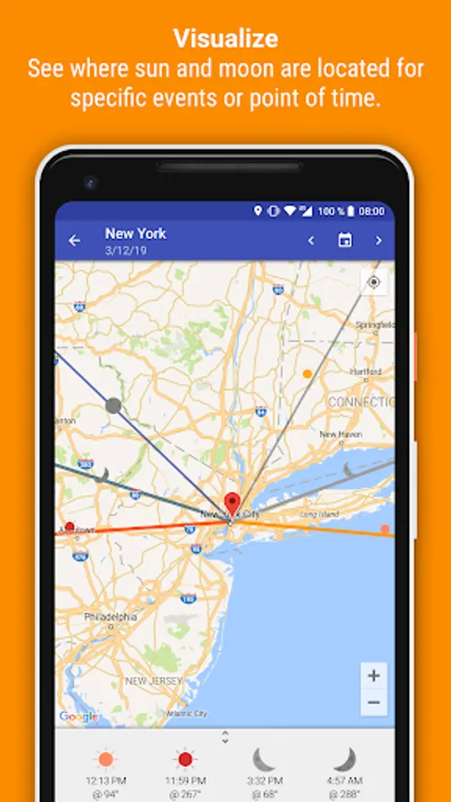 💫 Visualization of the azimuth-data of sun and moon for specific time