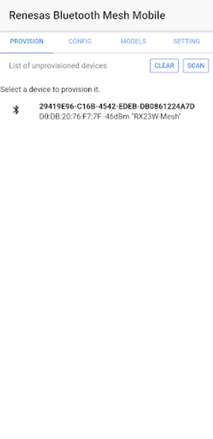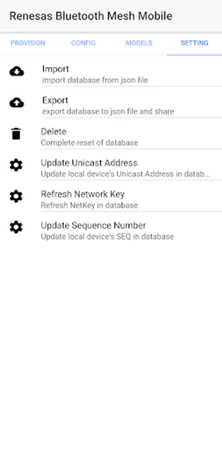 Renesas MeshMobile is a mobile application that works as a Provisioner and a Configuration of Bluetooth® Mesh wireless communication. You can easily evaluate Bluetooth Mesh communication operation with the RX23W and the RA4W1 which are Renesas Electronics' 32-bit MCUs that support Bluetooth® 5.0 Low Energy.