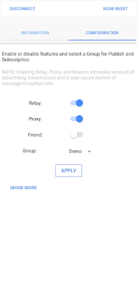 2. Configuration: configure Node devices to Model communicate in a Mesh network