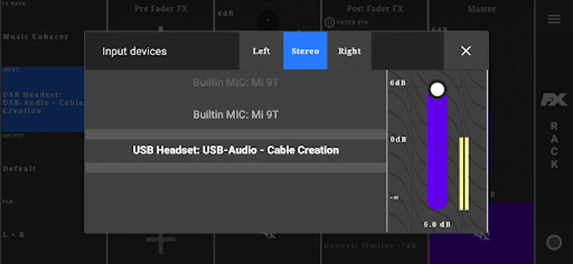 Renetik Fx Rack offers visual feedback for all effects, allowing you to monitor input and output levels in real-time. You can save your preferred effect configurations as presets with custom names for easy recall. The app supports stereo input and output selection, as well as panning for precise audio placement.