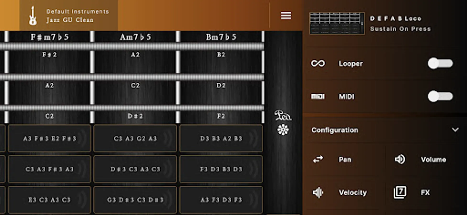 The app supports various guitar-specific controllers, including Chord, Scale, Sequence, and Split. The Chord controller offers enhanced configurability, while the Scale controller provides multiple keyboards assigned to specific scales. With the Sequence controller, you can import, export, and edit MIDI sequences, allowing for seamless integration into your compositions. The Split controller lets you combine two different controllers side by side, further expanding your creative possibilities.