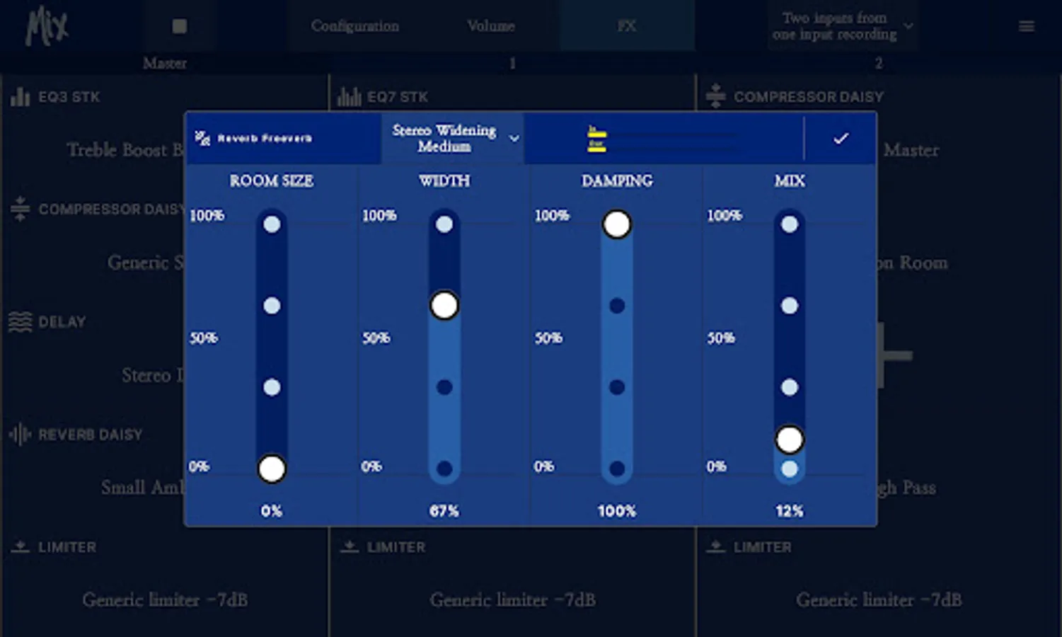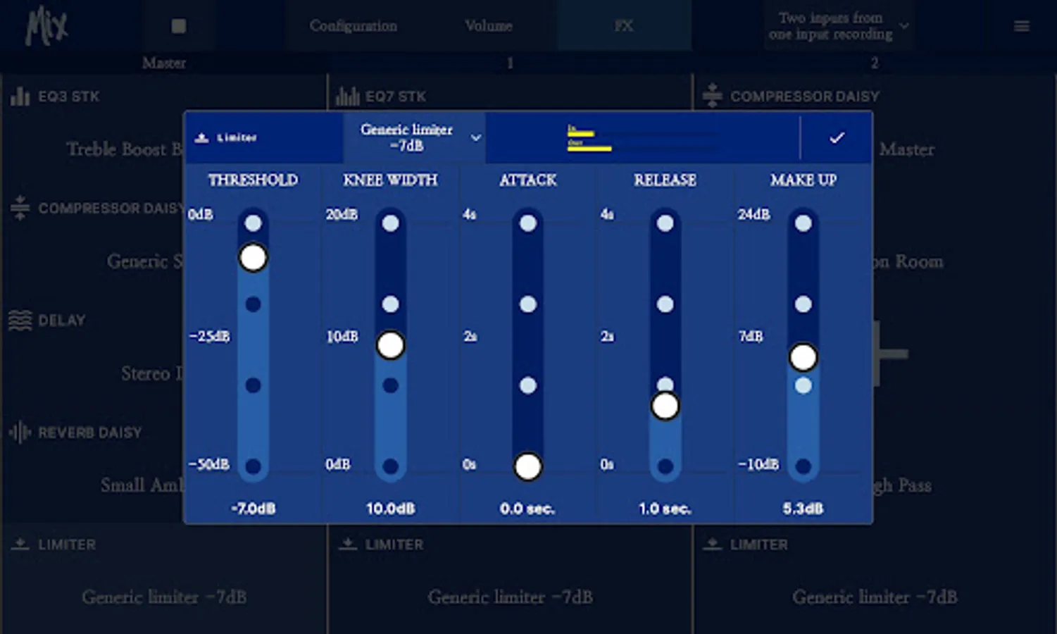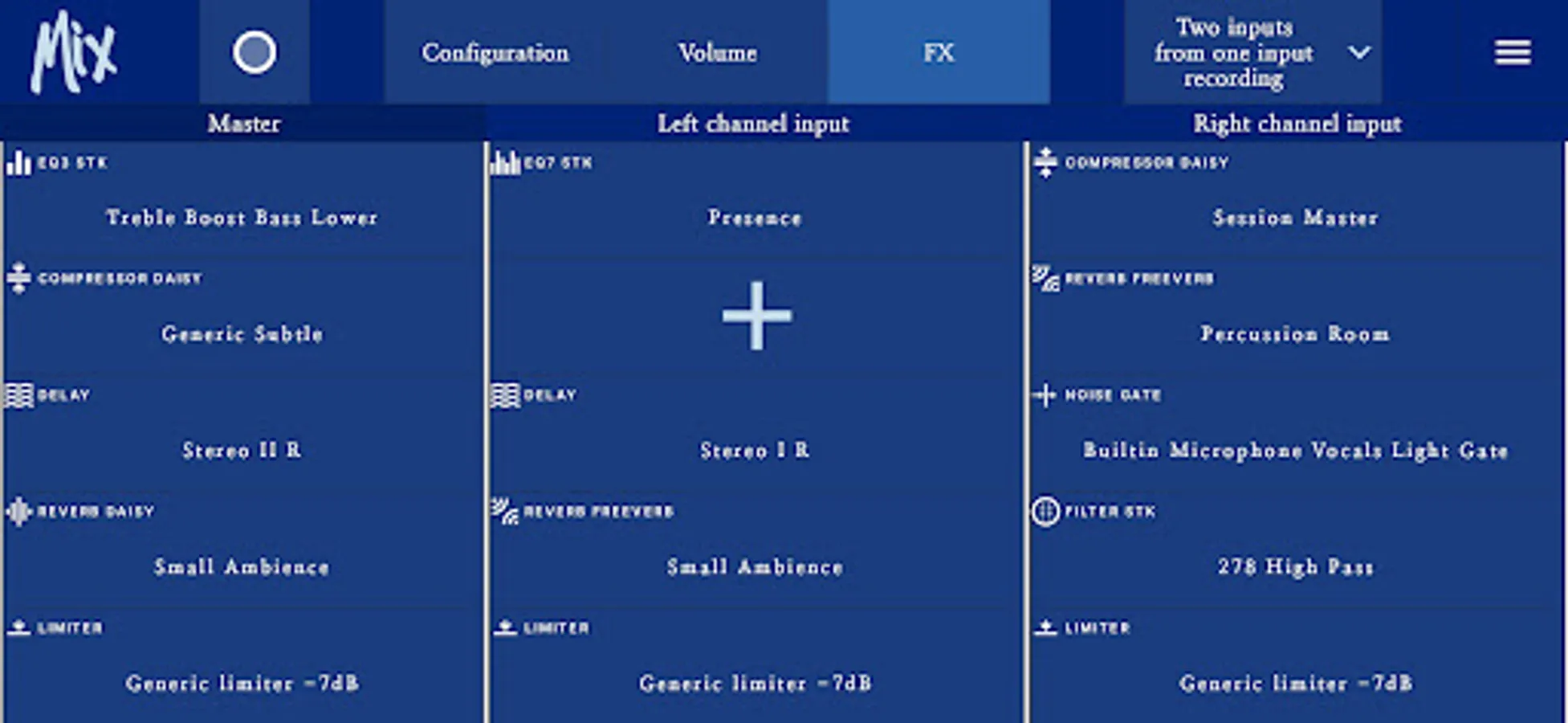 - Filter, EQ3, EQ7, 2 kinds of Reverb, Distortion, Noise Gate, Compressor, Limiter