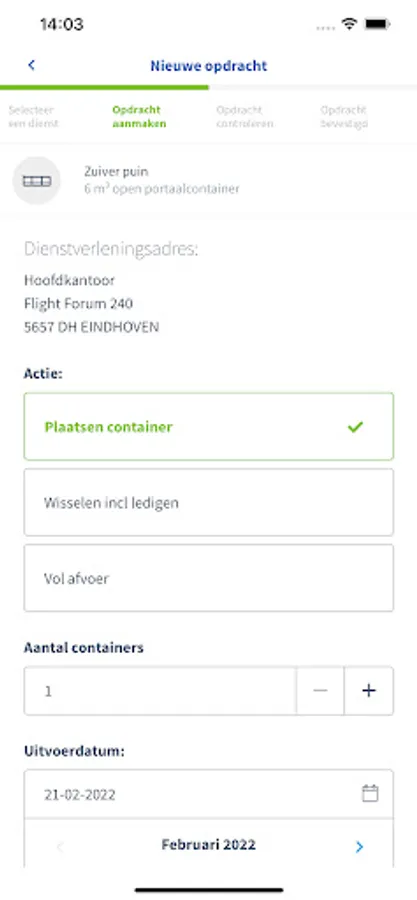 Are you interested in the MyRenewi app and you don't have a MyRenewi account yet? Request this via https://www.renewi.com/business/customerservice
