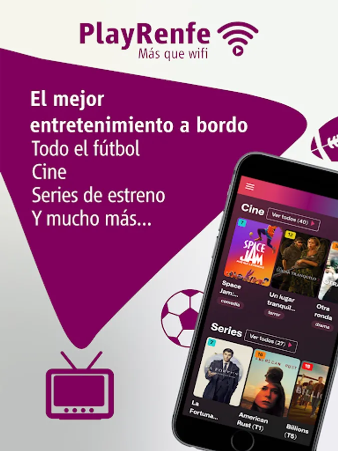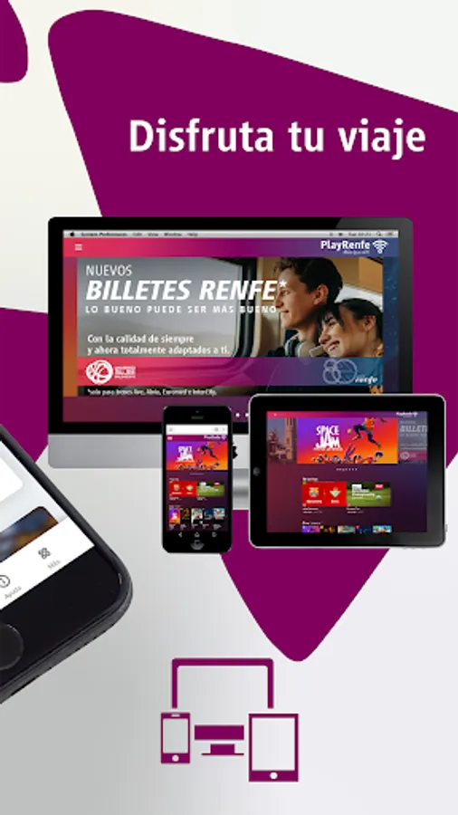 PlayRenfe is the Wi-Fi connectivity and entertainment platform available on your Renfe journey and in Cercanías suburban rail stations. You can go online with your devices and make the most of your travelling time by working or enjoying films, live football matches, your favourite series and much, much more.