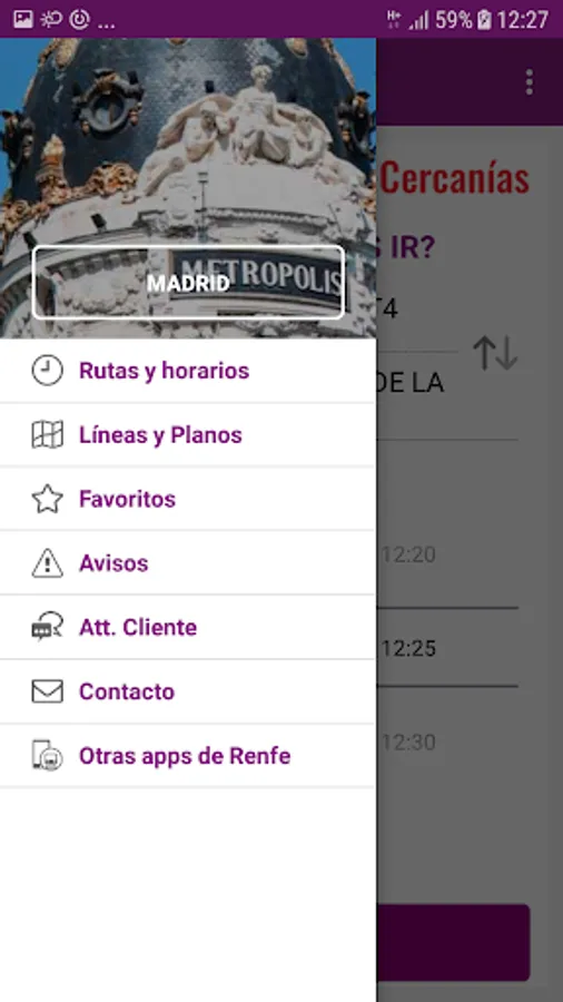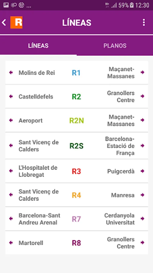 Travelers Renfe official application for consulting schedules, notices, lines and planes of the commuter trains cores: