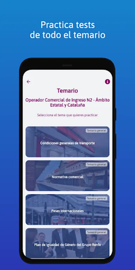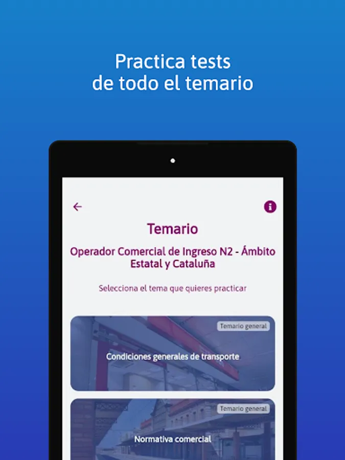- Access to more than 3,000 questions of the syllabus required in the call for Commercial Operator of Income N2