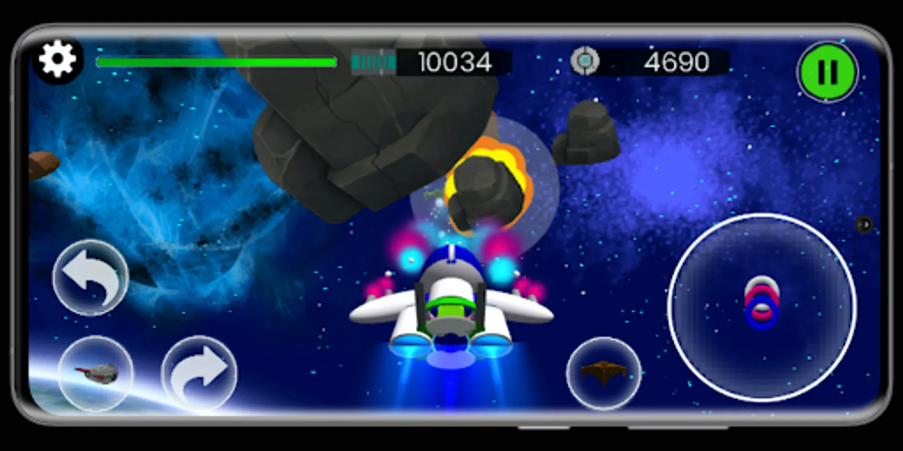 The Aliens are trying to destroy earth. With their advance technology they pushed the asteroids down towards earth. we need to act fast, we need to destroy those asteroids before they could reach earth otherwise it will be the end of humanity. We are calling out for all of you, wherever you are the world needs you right now. You are the only hope, take control of a spaceship to protect your beautiful planet. Your goal will be very challenging as you will have to face the most advance technology. As the game progresses, you will be facing an increasingly large number of asteroids and Aliens ships but not to worry you will be able to upgrade to more lethal spacecrafts. We are counting on you.