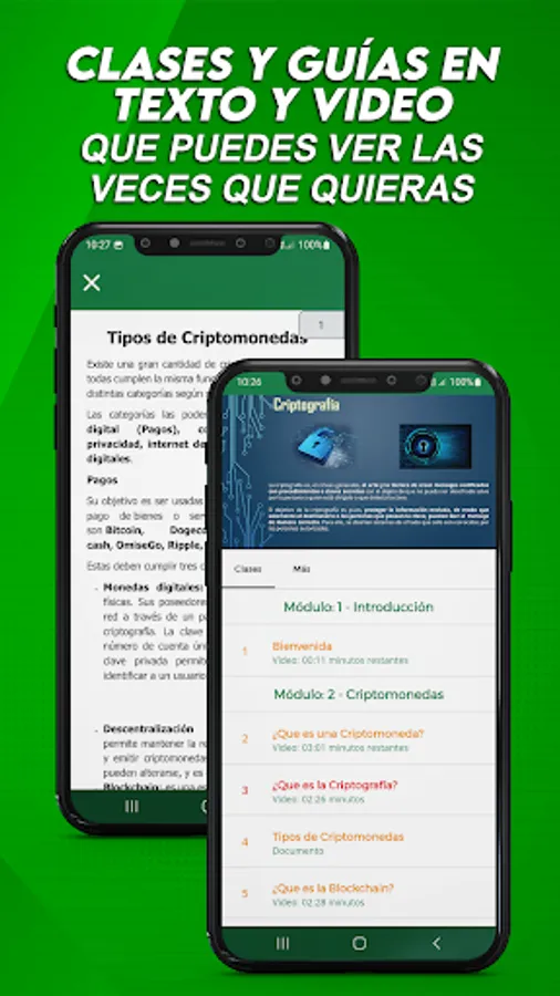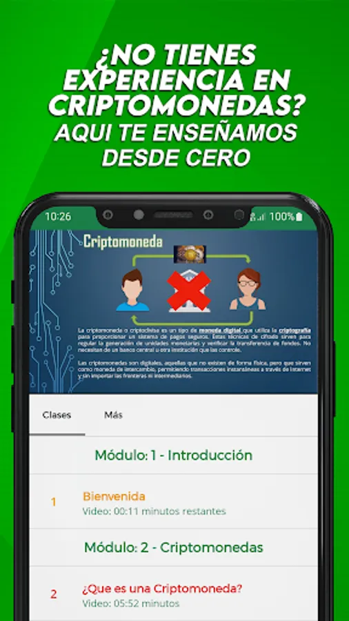 That is why we have created this Cryptocurrency and Bitcoin Course, where we will open your mind so that you understand this wonderful world, we will show you safe options for buying and selling bitcoin (BTC) and other cryptocurrencies, we will also show you some of the The best-known and safest Wallets or Wallets, we will teach you what exchanges are and we will explain how some platforms like Binance, LocalBitcoin or Coinbase work, we will provide you with basic concepts about Cryptocurrency Mining and Trading; all this in a complete tutorial and with a simple language so that you can understand it easily. Next we will give you a small summary of what you can find in our application.