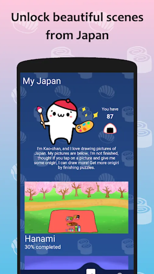 * Unlock hand-drawn scenes from Japan as you solve puzzles! *