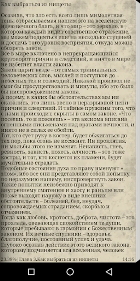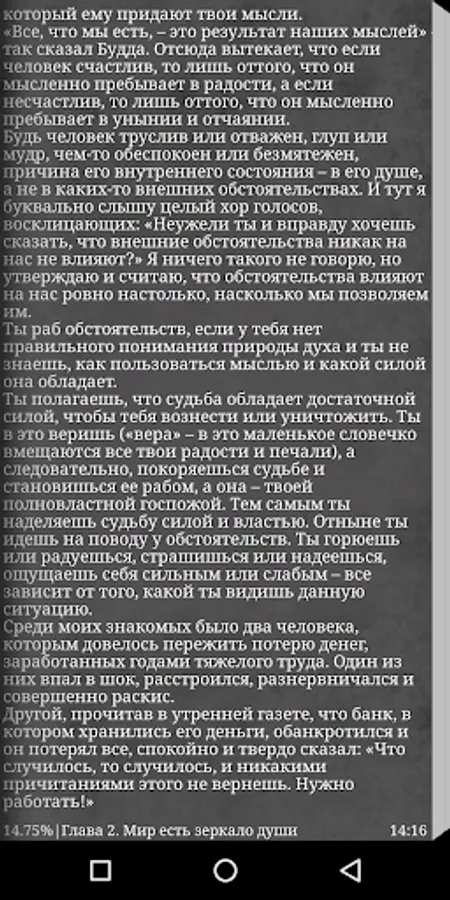 This book is for those who are not afraid to look deep into themselves and open in their own inner world a true key to success and prosperity. Relying on the rich spiritual and practical experience that literally permeates his glorified creations in the genre of self-improvement, in this work James Allen instructs his readers on the path of faith, helping them "to find in themselves the source of all successes, happiness, victories, achievements, all real and true ". Such a task would be overwhelming for most of us if it were not for wise lessons from a man who spent his whole life searching for these inspirational truths.