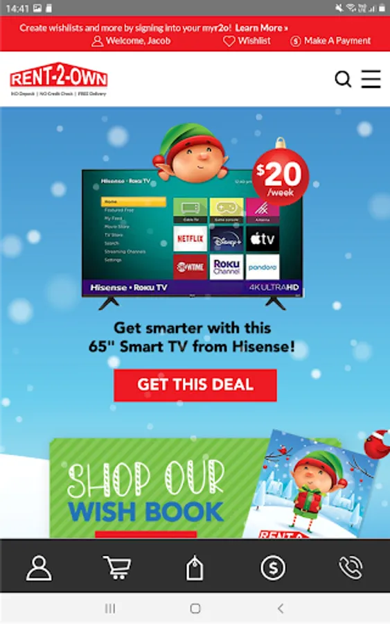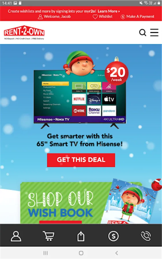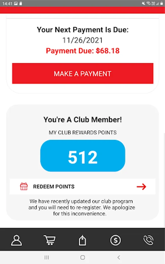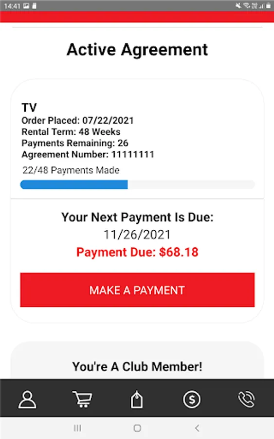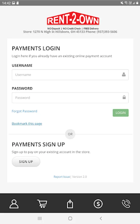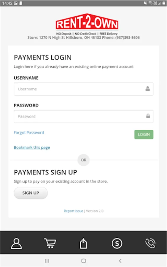 The Rent 2 Own mobile app allows customers to manage their account , Shop products, Receive discounts, and contact support