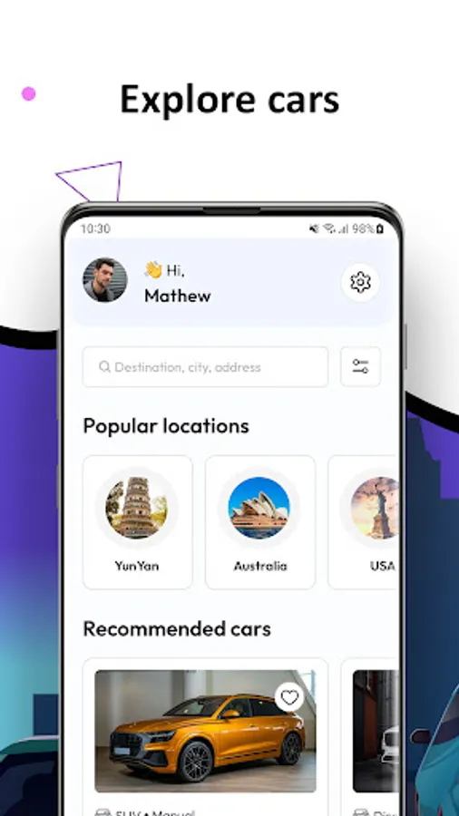 -Explore all the available cars, including the ones that are near your current location and use the advanced search filters to find the best one that suits you