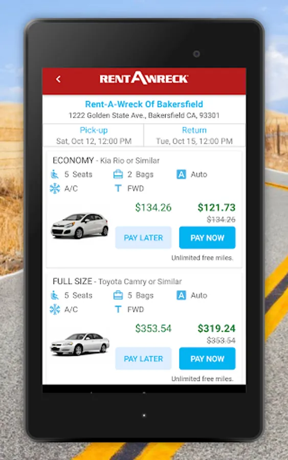 Renting a car can be confusing, especially if you are a first-time renter or don't understand the terminology involved. Rent-A-Wreck Car Rental app provides easiest and fastest possible way to book a rental vehicle. Going to an airport or travelling across the town? Rent-A-Wreck is here to serve all day around.