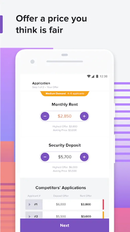 Review the real market demand for the particular house: see the offers, review the number of applicants, and submit your customized offer to seal the deal. With Rentberry, you’ll pay the real market value of the rental apartment.