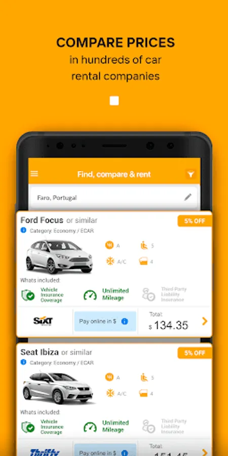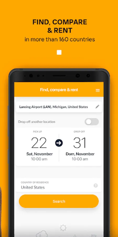 Enter your destination, pick-up and return dates and times, your country of residence, and tap on search. Then we do all the heavy lifting for you.
