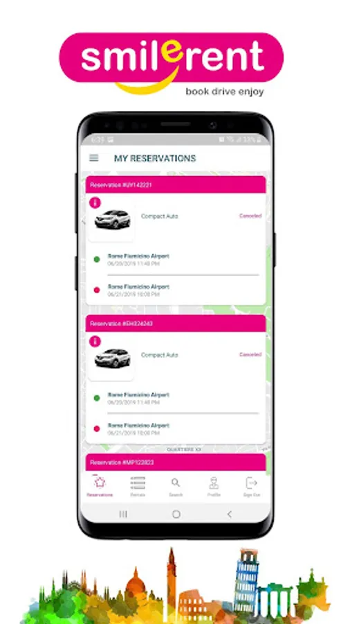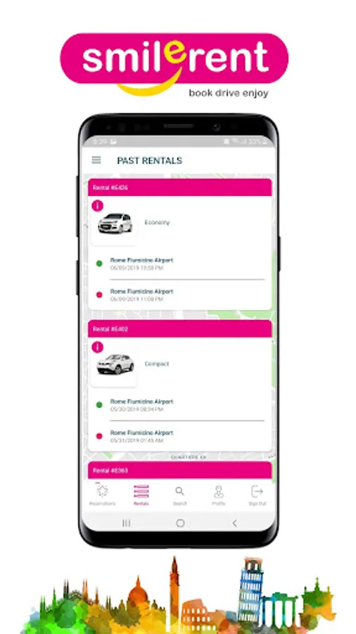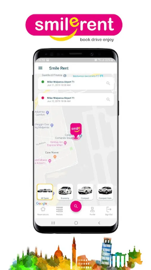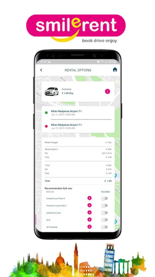 Are you ready to leave? Open the app and use the map to easily reach your car, without going through the rental counter… and with one click you unlock the car and start your journey! And to return it? It's simple! All you have to do is bring the car back to where you picked it up at the scheduled time and end your rental with an easy click! Do you want to enjoy your trip with Smile Rent for longer? No problem, open the app and extend your rental with a few easy clicks!