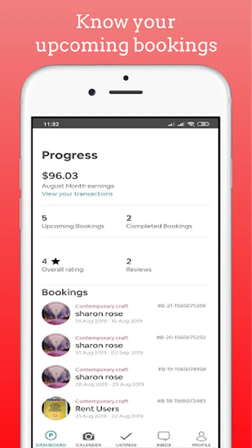 Rent your extra space and earn money for it. Manage availability and your bookings. Easy cancelation policies and know your users. Chat with your users to know them before there stay at your place.