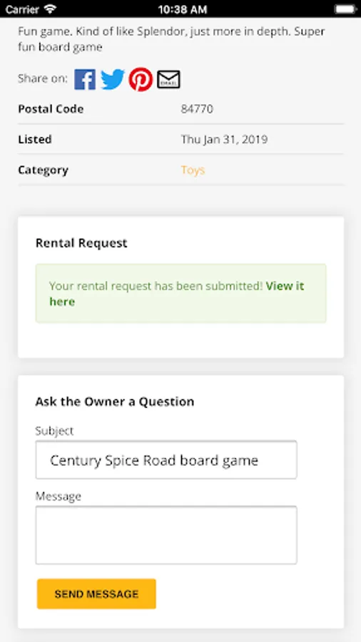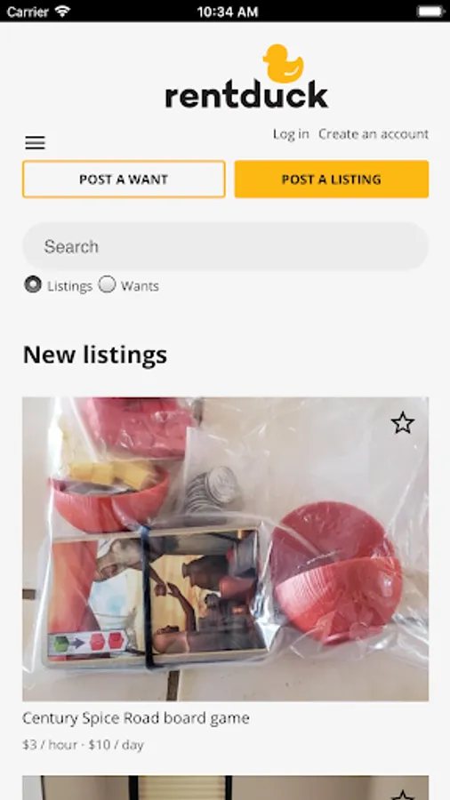 Use this app to search for items for rent in your area. After creating a free account, you can post any item you want to offer for rent.