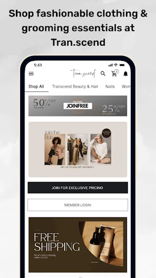 Shop Tran.scend with ease from anywhere! Gain access to in app features and discounts on the go. this includes customer accounts, affiliate and member login, membership discounts, and an all around new age shopping experience!