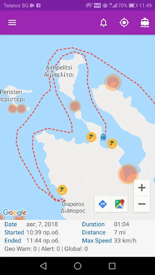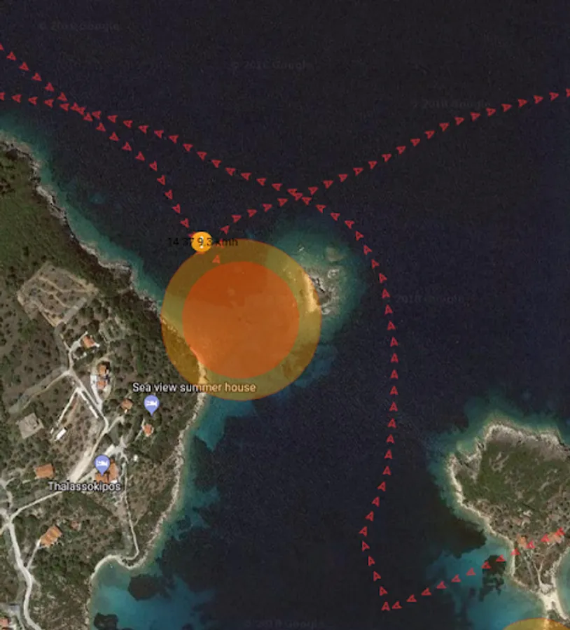 application. When a boat enters a predefined danger zone (rock, cliff,