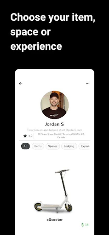 Choose from thousands of local items + spaces to rent - near or far - in communities big or small throughout Canada. Find everything from a record player to a bike or a unique space in the heart of a city. Browse through item + space listings you’d love to rent from dependent on your vibe, want, or just need for a new experience, and book your rental directly in the app or save it for a future date.