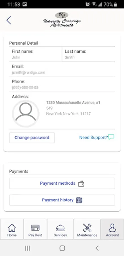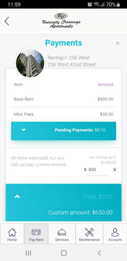 Make online rent payments (option to pay by ACH/eCheck or debit/credit card)
