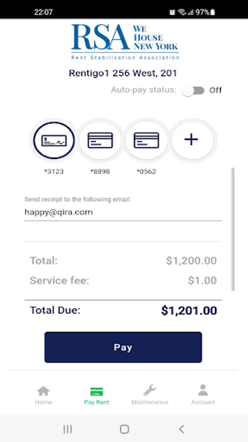 ● Make online rent payments (option to pay by ACH/eCheck or debit/credit card)