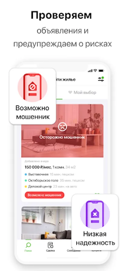 Приложение позволяет быстро и безопасно найти или сдать квартиру. Каждое объявление проходит проверку специальным ботом и сотрудником для обеспечения защиты. Аренда квартир без посредников. База квартир обновляется постоянно, собирая объявления с популярных сервисом аренды жилья.