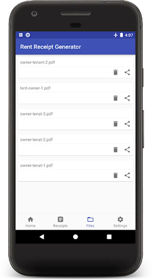 Instantly create rent receipt and save it in PDF file . House owner can keep track of all receipt generated and modify later. Use full for HRA tax submission.It has different receipt templates to choose from