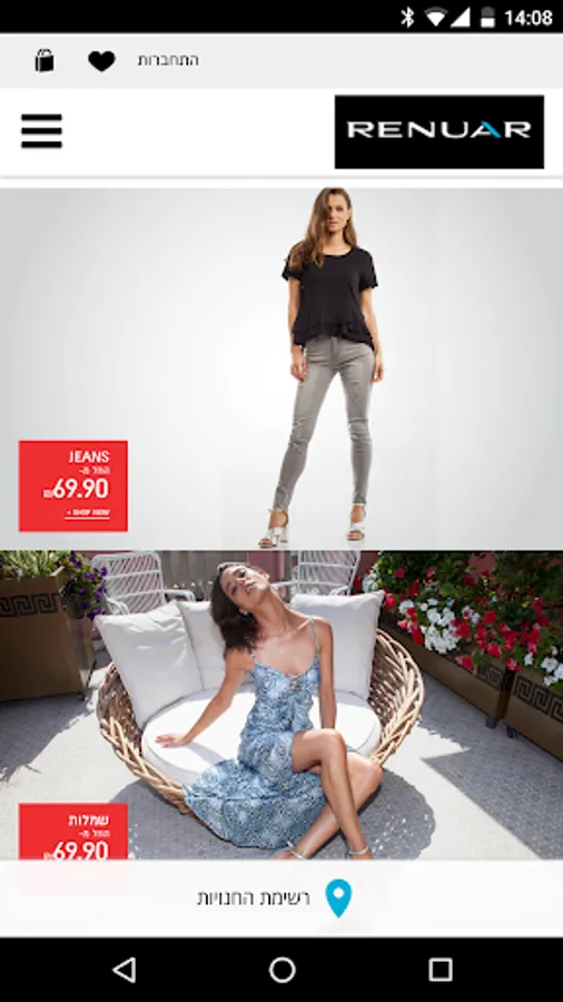 בעזרתה תוכלו לנווט לחנות הקרובה אליכם, לקבל מאיתנו עדכונים על קולקציות חדשות ומבצעים חדשים ולהזמין מחנות האונליין שלנו. תיהנו