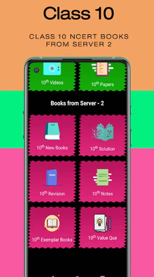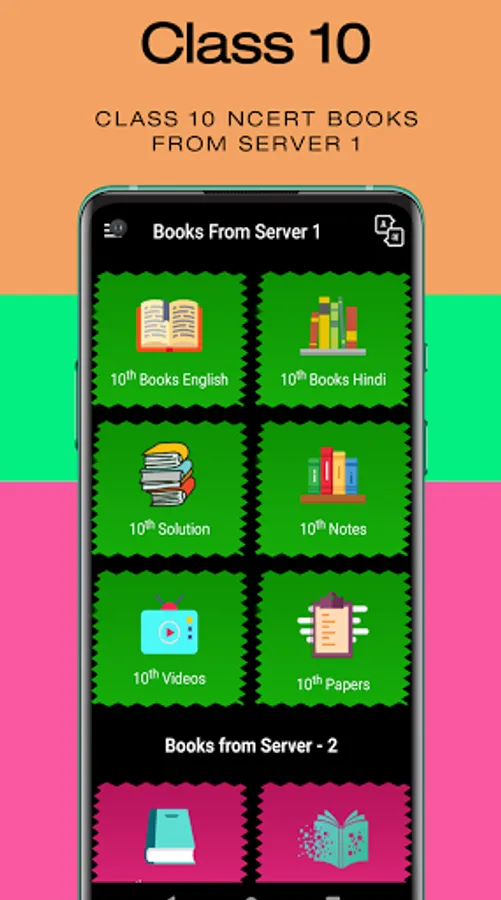 • Books From Server 1 Contains Class 10 NCERT Books English,Class 10 NCERT Books Hindi,Class 10 Solution,Class 10 Notes,Class 10 Videos,Class 10 Previous Year Papers.