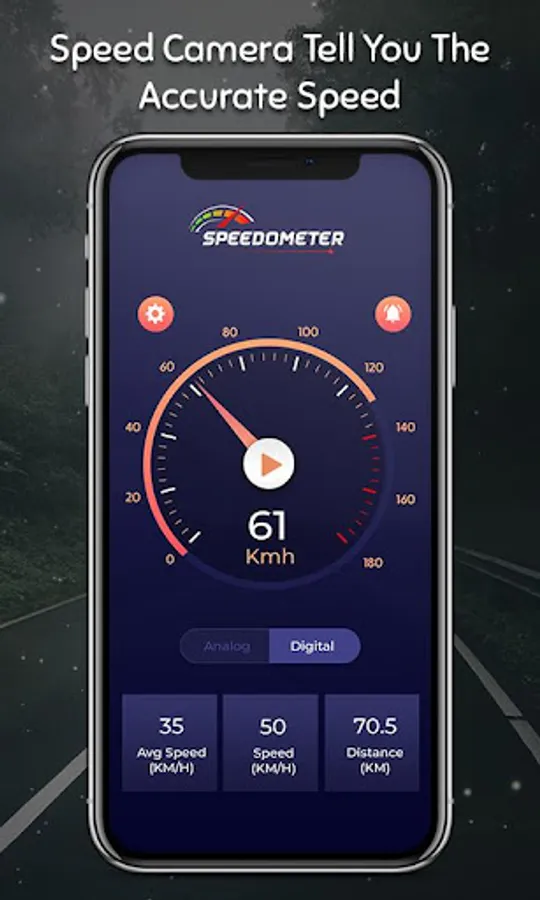 GPS Speedometer - Speed Camera displays your current speed on a digital speedometer. This Speedometer will measure your speed and rings the alarm when the speed exceeds the limit that you allow, keeps track of your top speed and average speed.