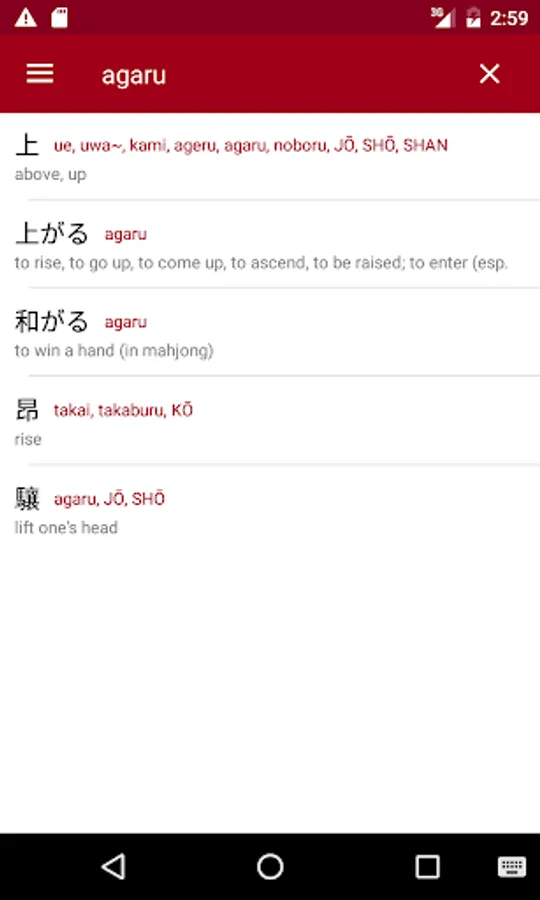 ・Results are sorted by relevance. The best match appears at the top, so you can reach the right word quickly