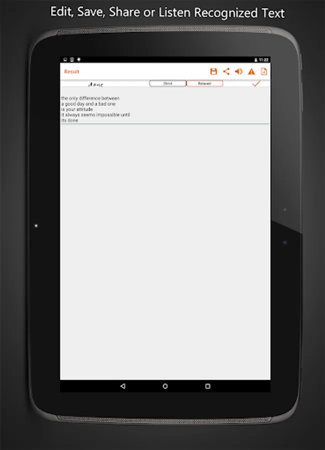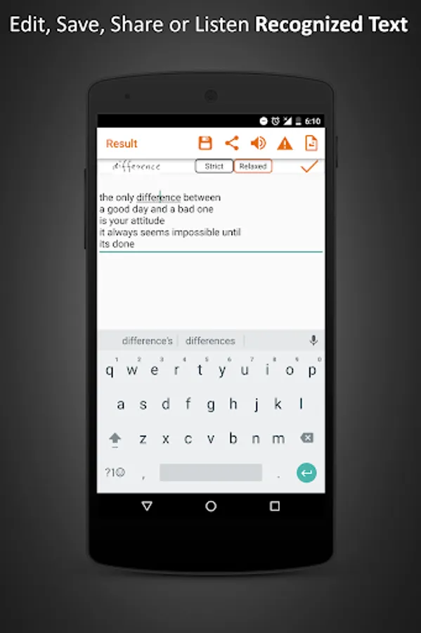 Using Scan & Scribe you can convert your Printed Docs and Handwritten Notes (Disjoint) Editable text that you can Copy, Save, Listen or Share it via Facebook, email (Outlook, Gmail etc.), WhatsApp, Dropbox, OneDrive etc. Its standout feature is its separate offline text recognition engines for scribbled notes and Printed contents.