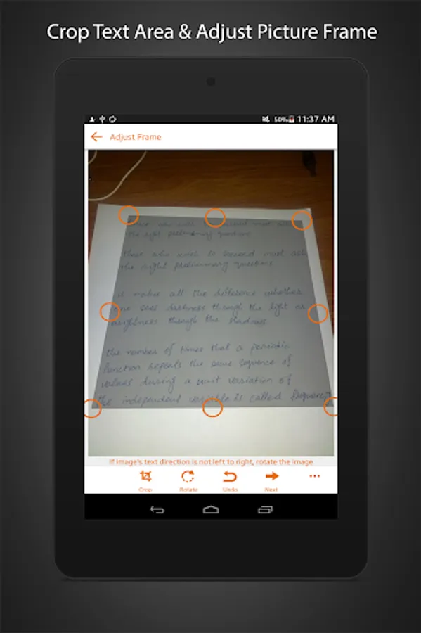 1. Take a camera shot of handwritten notes or docs or load desired text image from gallery.