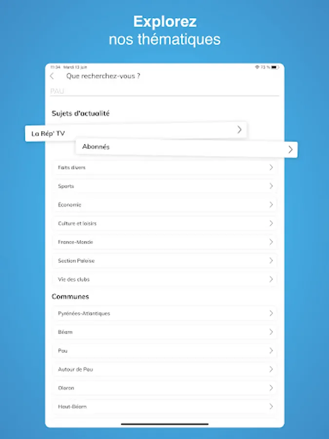 - Find all the thematic headings: sport, economy, outings, news items and many others
