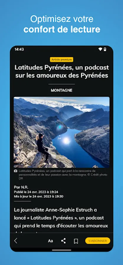 - Optimize your reading comfort by switching to dark mode and changing the font size